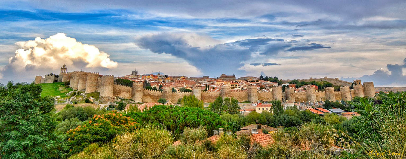- Miguel Ángel Simarro. Ávila (Grupo de FB #LaEscuelaDeFotografía). Una fotografía panorámica muy bonita, con un motivo que se adapta perfectamente al formato. El primer plano contextualiza la ciudad amurallada y el cielo resulta interesante, así como un uso del color llamativo, pero sin llegar a cobrar un protagonismo excesivo. Y la simetría de la composición le da también interés a latoma 🙂 ¡Muy buena panorámica Miguel Ángel! 😉