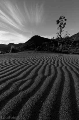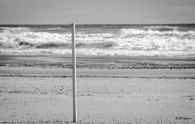 - Juan B. Signes: Playa de Castellón (Grupo de FB #LaEscuelaDeFotografía). Una fotografía extremadamente sencilla, y ahí creo que reside su potencia. Varias líneas horizontales contrastadas a un sencillo e indefenso elemento vertical. Pero ahí está, solemne, orgulloso… viendo el mar bravío 😉 Que el sujeto vertical esté descentrado le da cierto dinamismo, que en esta imagen tan sencilla, creo que le viene bien. El revelado/procesado si creo que se queda un poco cojo, para mi gusto muchos grises que se quedan a medio camino, me hubiese gustado algo más de contraste, pero ¡Estupenda captura Juan! 😉