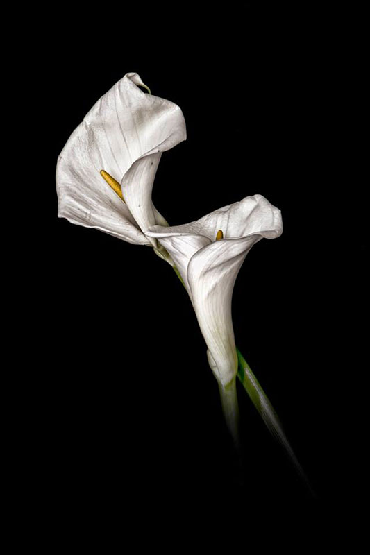 - Carlos Frías: Sín título (Grupo de FB #TheImagen). Una bonita y sugerente imagen. El fondo negro realza la figura de las flores, opuestas en tono y le da fuerza. La luz muy controlada aisla las flores y las hace brotar de la nada, parece un verso extraído de un poema 😉 La luz es suave, pero suficiente como para apreciar el volumen y la textura. Para mi gusto personal quizás se ha forzado un poco el contraste, algo que le da fuerza, pero quizás de forma algo excesiva ¡Estupenda creación Carlos! 🙂