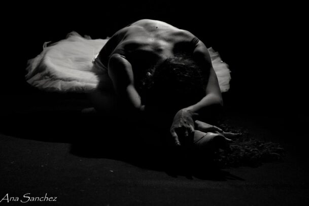 - Ana Belén Sánchez: Sin título (Grupo de FB #LaEscuelaDeFotografía). La luz cenital controlada, el blanco y negro y la temática, confieren belleza y elegancia a esta imagen. Podemos preguntarnos el porqué de esa postura cerrada, íntima. En esta imagen hay un espacio vacío abajo, que me parece más interesantes que estuviese arriba, quizás por esta sensación de sentimiento, concentración, meditación interior que me evoca, para dejar espacio a que se eleve su luz interior 😉 Lo comentaba en la imagen ganadora: cuidado con las firmas, en esta imagen vuelve a tener un impacto visual creo que excesivo. Pero sin duda, una ¡Estupenda imagen Ana Belén! 🙂