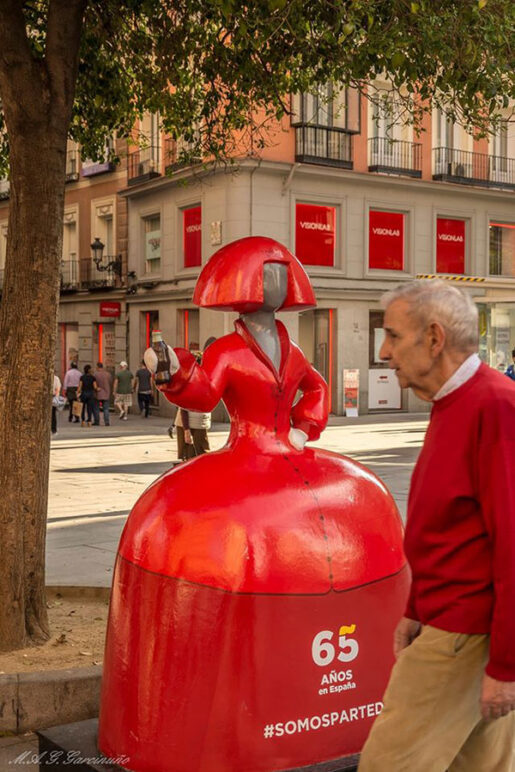 - Miguel Ángel Gómez: Tú edad te la marca……Coca…Co…. (Página de FB The Imagen). Aquí el fotógrafo ve la escena, se mueve buscando elementos que combinen y espera paciente el momento de completar la escena y la combinación de colores. Es una recreación, pero es fácil que se ajuste a lo que Miguel Ángel hizo 😉 Esta fotografía se enmarca dentro de la fotografía de calle en la que se trata de no crear la escena, si no de buscar esas imágenes en el movimiento y ajetreo diario. Esta imagen funciona bastante bien, lástima que por la izquierda aparezca un que no aporta nada y que es justo el trozo de foto que nos falta por la derecha. Un pequeño movimiento de cámara hubiese corregido esta cuestión, pero por la rapidez de este tipo de fotos, no siempre es fácil ¡Muy bien trabajada la escena Miguel Ángel! 😉