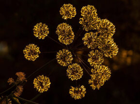 - Santiago Cáceres Rojo: Sin título (Grupo de FB #LaEscuelaDeFotografía). Una sencilla y bonita imagen muy sugerente. La iluminación muy centrada en las flores (o terminaciones de la planta), las realza y las separa del fondo. Un fondo oscuro que contiene algunos tonos cálidos que combinan muy bien con el sujeto principal. Las formas redondeadas de las iluminadas partes de la planta y el conjunto del grupo, también con forma redonda, nos remite a lo natural y le da unidad y armonía al conjunto. Muy bien usada la iluminación, y muy bien interpretado el color, en la captura y en el postprocesado ¡Muy buena imagen Santiago! 😉