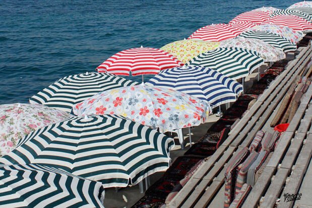 - Juan Fco Navarro Caler: Sin título (Grupo FB La Escuela de fotografía). El ritmo queda claro por las sombrillas, pero también está presente en la estructura que me muestra por la derecha. La luz dura aporta color y contraste. El uso de un teleobjetivo comprime los planos y hace que la imagen queda más interesante, más pictórica, y las líneas diagonales confieren dinamismo a la misma ¡Una propuesta muy interesante!