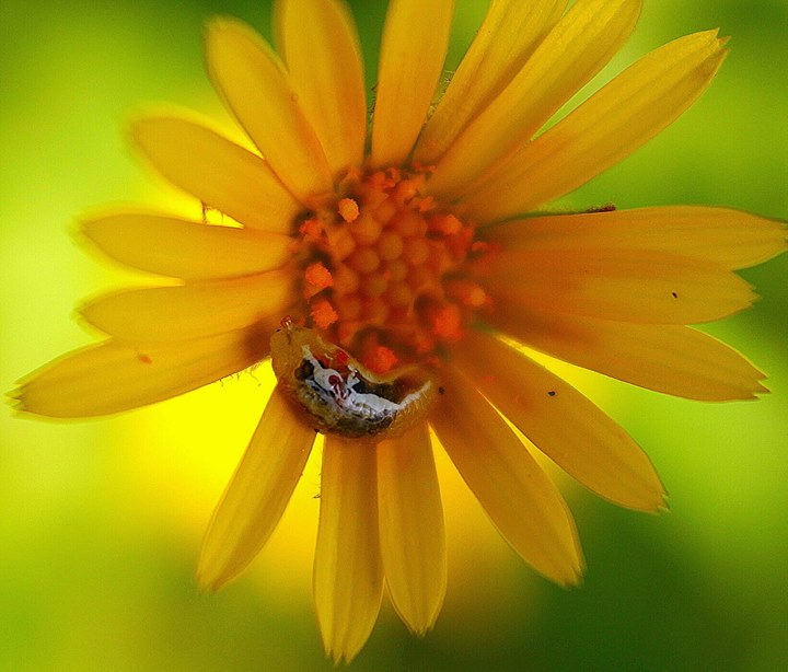 - José Manuel Vazquez Varela: sin título (Grupo La Escuela de Fotografía). Otra de las estupendas fotografías de flores de este reto. Me quedo con esta por la combinación de colores y haber captado al insecto. Le falta un poco de foco, pero es una fotografía muy bonita.