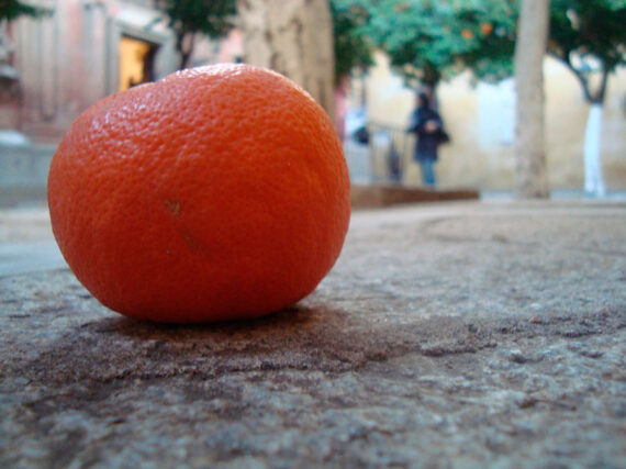 - Diego Pacheco: Patio de los naranjos (Twitter). He seleccionado esta fotografía, porque creo que está bien usada la profundidad de campo para explicar el contexto. La profundidad puede ser reducida, y utilizarse para un fin, como contar algo, no sólo aislar un elemento. Llama también la atención el punto de la toma. Y lo único es que, para mi gusto, le sobra un poco de suelo, que permitiría ver un poco más el árbol detrás, y un poco de foto sobre la naranja. En cualquier caso ¡me ha gustado la idea!