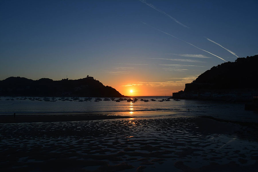 - Mertxe González: Mi hermosa bahía (Grupo FB La Escuela de fotografía). En este reto había muy buenos contraluces, pero me he quedado con éste. Me parece un acierto situar el sol en el centro y centrar así el horizonte también. Además del contraluz, la escena recoge ese contraste de colores entre los cálidos y los fríos. El reflejo en el suelo también le aporta textura al suelo y complejidad a la toma. Ojala en lugar de esas líneas delgadas del cielo, que no conducen a nada, hubiese un cielo con nubes más llamativo, sería ya estupendo. Pero de momento no podemos como fotógrafos, en la captura atraer las nubes o quitar las que hay 😉 ¡Una estupendo contraluz y una bonita fotografía de paisaje!