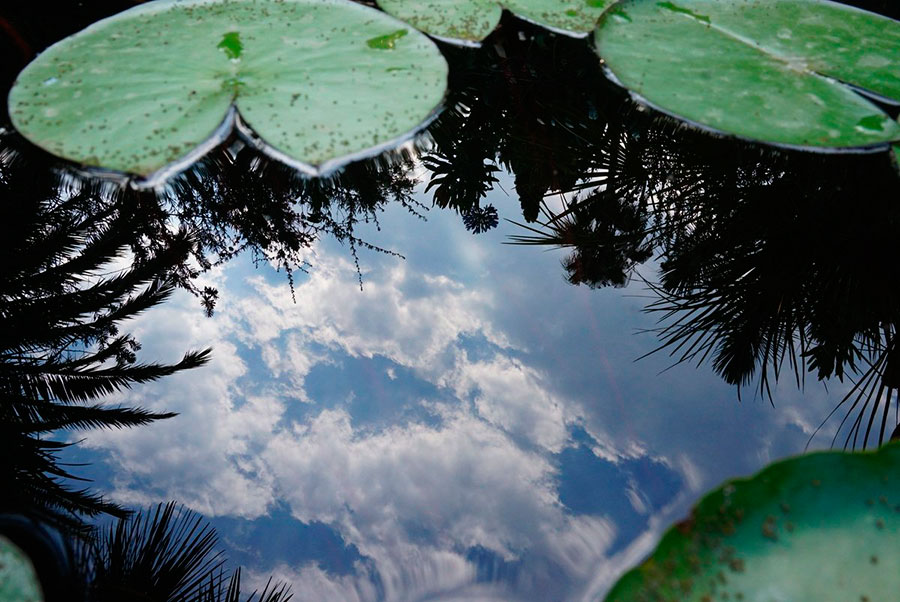 - Maribel Panadero: Nenúfares en las nubes (Twitter). Los reflejos dan mucho juego, y esta mezcla de elementos en el agua, el cielo, etc. es un motivo que puede funcionar bien. Aquí Maribel lo ha utilizado estupendamente, creando una imagen que te hace detenerte para entenderla completamente 😉 Pero algo que creo que le ayudaría, y que no he visto en ninguna fotografía del reto es voltear la imagen, es mi consejo Maribel, prueba a rotarla 180º, las palmeras dejan de estar boca abajo, pero precisamente por eso el resto de elementos producen más extrañeza ¡Estupenda fotografía!