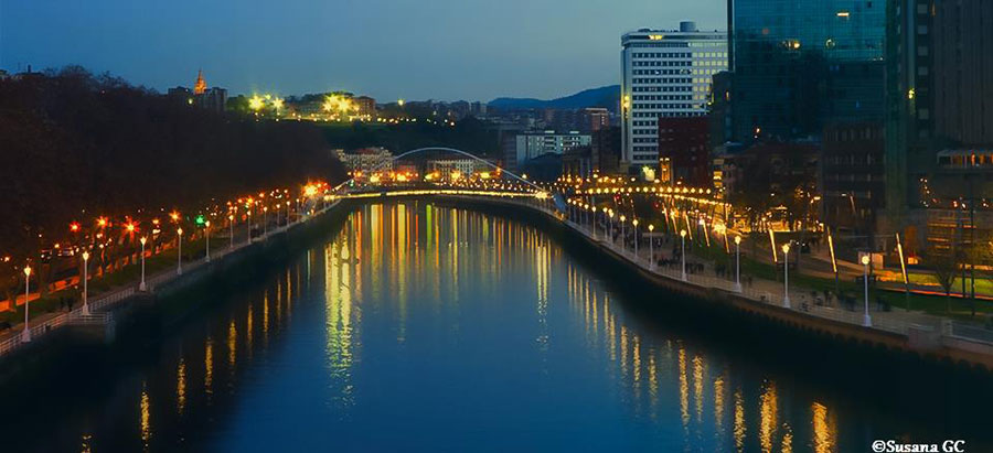 - Susana GC: Bilbao (Bizkaia) (Grupo FB La Escuela de fotografía). Una fotografía que aprovecha la hora azul, de la que hace poco hablaba en el Blog. El contraste del cielo azul y las luces cálidas da interés en la fotografía, las líneas, un tanto sinuosas de las orillas del río conducen la mirada desde abajo hasta arriba. Una fotografía urbana que funciona ¡bonita toma de Bilbao! 😉