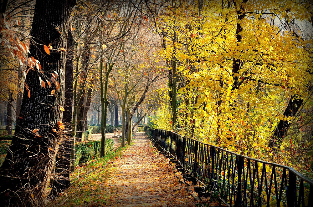 Una fotografía inundada de otoño, la viva imagen del otoño, con unos colores impresionantes, aunque ligeramente saturados, para mi gusto. La composición me parece adecuada, con un encuadre clásico, pero efectivo y los árboles laterales enmarcan un poco la imagen, que parece casi una pintura. Ahora, hay un detalle importante que le resta bastante según mi opinión, las personas que aparecen por la izquierda. Parecen que salen en el encuadre casi de rebote, porque no se les esperaba, o están presentes o no, pero así ni una cosa ni otra y visualmente afectan negativamente a la imagen. Todo cuenta en una imagen, tenlo siempre presente 😉 Aún así me ha parecido una maravilla de sitio y de fotografía ¡Enhorabuena Miguel Ángel! 😉