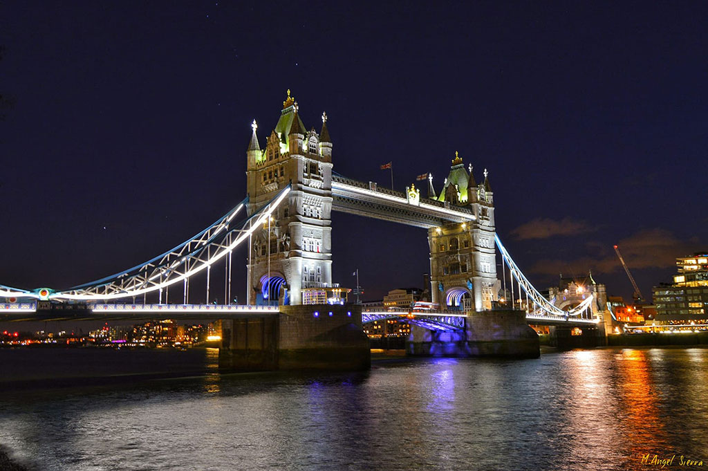 - Miguel Ángel Simarro: Tower Bridge London (Grupo de Facebook #LaEscuelaDeFotografía). Y terminamos las imágenes seleccionadas con otra foto urbana, una imagen bien compuesta y muy bien capturada de este bonito puente. Quizás los colores, para mi gusto estén algo saturados y también cerca de no combinar especialmente bien, pero aún así creo que si están controlados. Estaría genial ver más estrellas en el cielo, pero en un cielo urbano, con la contaminación lumínica es casi imposible. Una bonita fotografía, tipo tarjeta postal, de las que dan gusto que acaben impresas en el salón ¡Estupenda fotografía Miguel Ángel! 😉