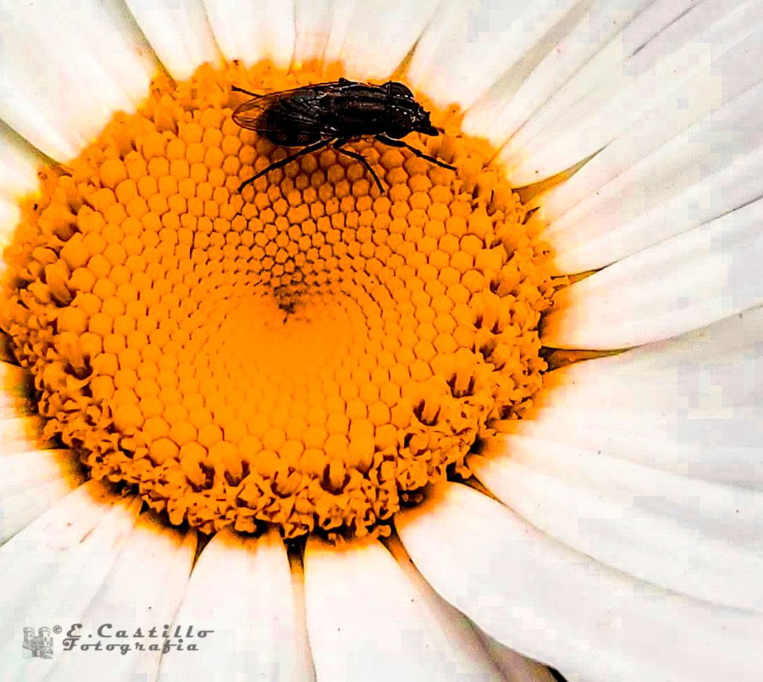 - Emilio Castillo: Polinización (Grupo de FB #LaEscuelaDeFotografia). La fotografía de aproximación o macro no es nada sencilla, más cuando aparecen seres vivos, como en este caso este insecto, se requiere de observación, calma y paciencia. Pero aquí está, pillada infraganti a este insecto seguramente haciendo su trabajo, como sugiere el título de la fotografía. El recorte de la imagen entiendo que corresponde a centrar el interés en los elementos que aparecen, aunque es un formato un pelín extraño, al no ser totalmente cuadrada. Me gusta el contraste de los colores y la composición dónde se ha descentrado al elemento de interés, haciendo la imagen menos estática, a pesar del formato del encuadre. La situación de la flor en el encuadre, también apoya que la interpretación sea más dinámica. ¡Muy bien visto y capturado Emilio! 🙂