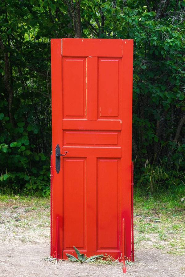 - Pili Jurado: La puerta roja… (Grupo de FB #LaEscuelaDeFotografía). ¿Dónde nos llevará esta puerta? Parece sacada de Alicia en el País de las Maravillas, jejeje. El llamativo color de la puerta, contrasta estupendamente con el color verde de la naturaleza del fondo y es un estupendo ejemplo de contrastes de colores. La luz suave no nos da información del volumen y aplana la escena, haciéndola más extraña si cabe. Es una fotografía curiosa, por lo curioso del elemento de interés, que despierta curiosidad y nos anima a imaginar… ¿Qué hace ahí esa puerta? ¿Qué habrá al otro lado? El punto de vista totalmente frontal no nos ayuda a ver realmente qué pudiera haber detrás ¿Y si a los lados fuese una pared pintada de naturaleza? Parece haber pistas de que no es así, pero ¿Quién sabe? 😉 ¡Una escena muy bien capturada Pili! 🙂